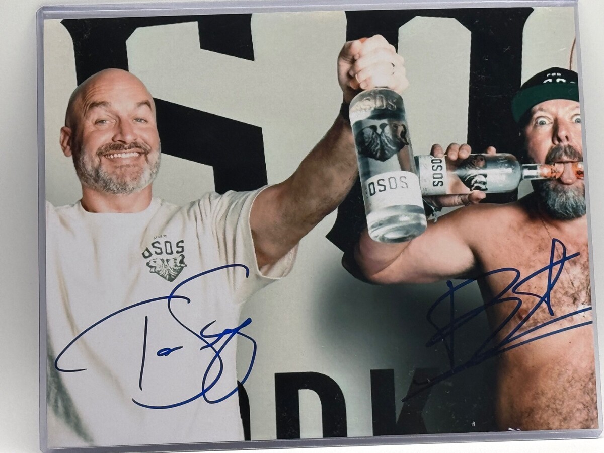 The product is a signed 8x10 photo featuring Tom Segura and Bert Kreischer behind bars, in what appears to be a humorous scene. This piece of entertainment memorabilia is a unique collectible item for fans of the two comedians, showcasing their sense of humor and creativity. It is a one-of-a-kind original piece, showcasing a different dynamic between the two comedians, making it a valuable addition to any collection of entertainment memorabilia.