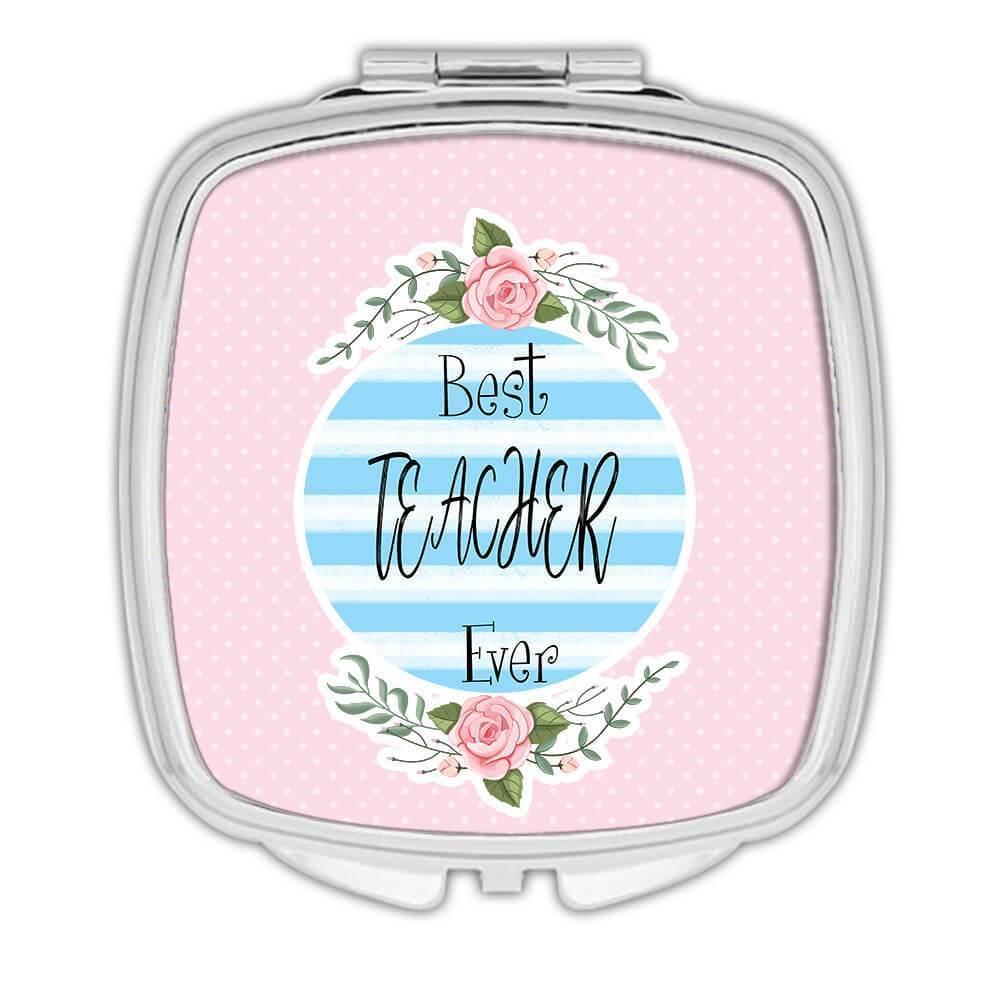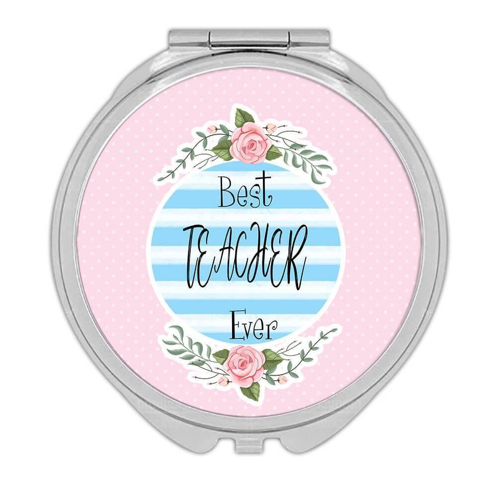Best TEACHER Ever : Gift Compact Mirror Christmas Cute Birthday Stripes Blue
