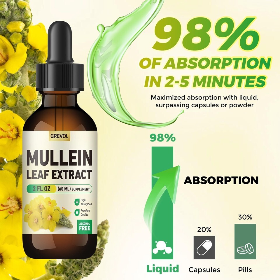 EASY TO TAKE: The drop form is easy to use and dose control, take 1ml per dose, twice a day, either directly into the mouth or add to water, tea or other beverages. Compared with mullein capsules and mullein gummies, mullein leaf drops can be absorbed by the body faster and the effects are realized more quickly. The bottle is designed to be lightweight and easy to slip into a bag or pocket for on-the-go convenience