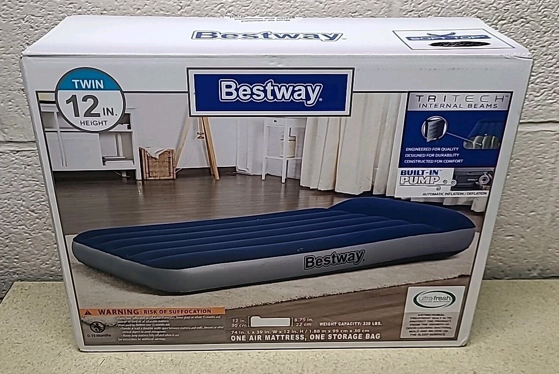 - Bestway 67932E Tritech 12" Twin Air Mattress with Built-in Pump & Antimicrobial