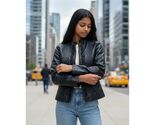 Big Chill Vintage Womens M Black Faux Leather Jacket with Ruffle Detail