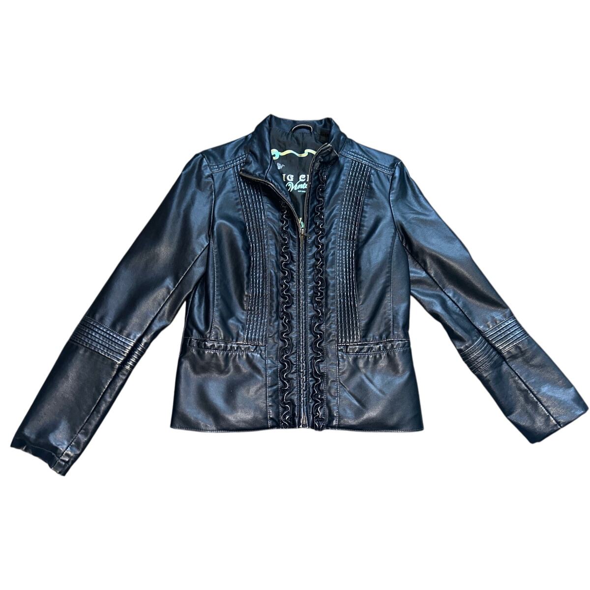- Big Chill Vintage Womens M Black Faux Leather Jacket with Ruffle Detail