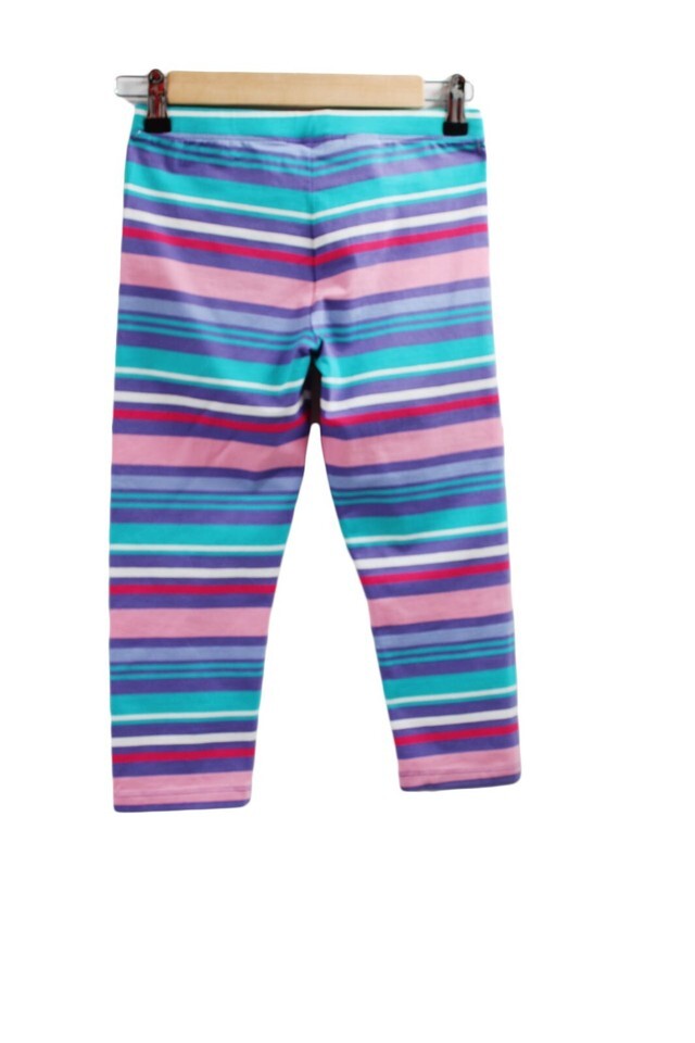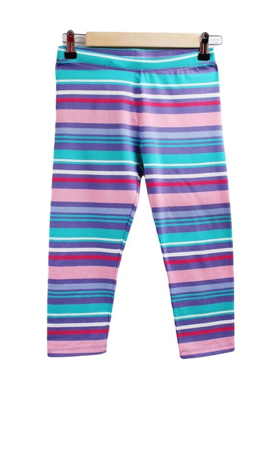 The Big Girls Striped Leggings by Spotted Zebra are designed for girls in size 12. These cropped leggings feature a colorful multicolor striped pattern, perfect for adding a fun touch to any outfit. Made from a comfortable cotton blend fabric, these leggings offer both style and practicality for everyday wear. Ideal for young girls looking for trendy and playful clothing options, these leggings are a versatile addition to any fashion-forward wardrobe.