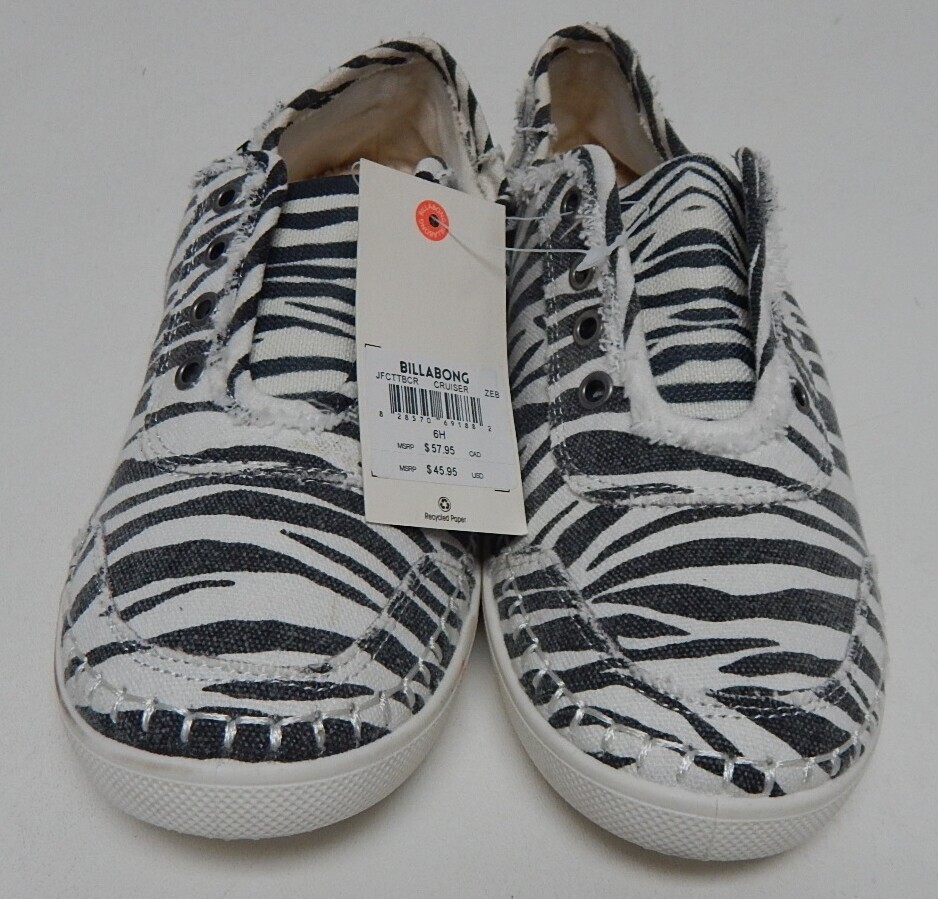 Billabong Cruiser Size 6.5 M EU 37.5 Women's Slip-On Canvas Shoes Zebra JFCTTBCR THIS SHOE'S CONDITION: NEW WITHOUT BOX. -Notes: New With Tags! IF THE ITEM IS NOT TO YOUR EXPECTATION WE OFFER A 30 DAY RETURN POLICY. ABOUT US: We specialize in footwear shoe accessories at a highly discounted price. We have a selection of new shoes, and also some displays, demos, pre-owned as well. PHOTOS: New Shoes: We usually send the the exact shoes pictured but may occasionally use our own stock images to represent several shoes. Store Displays, Demos, Pre-owned Shoes: We will send the EXACT shoes pictured here. A NOTE ABOUT OUR PRE-OWNED SHOES: We try to catch everything and describe it in the listing, but there are some things we may miss on occasion. This is why we take several pics of all pre-owned shoes from every angle possible so you as the buyer see what you will be getting. Also, because we are re-sellers we do not know the exact mileage of the shoes. SHIPPING: Shoes are in stock and ready to ship. We have a 1 day handling time but will usually ship same day if you purchase before 3PM Central Standard Time Need the item faster? We offer priority, expedited, and express one- day shipping on nearly all of our items We will combine shipping for expedited and one day deliveries. International Buyers Please Note: Import duties, taxes, and charges are not included in the item price or shipping cost. These charges are the buyer's responsibility. Please check with your country's customs office to determine what these additional costs will be prior to bidding or buying. QUESTIONS? Message us- we are usually very fast at responding! Listing and template services provided by inkFrog