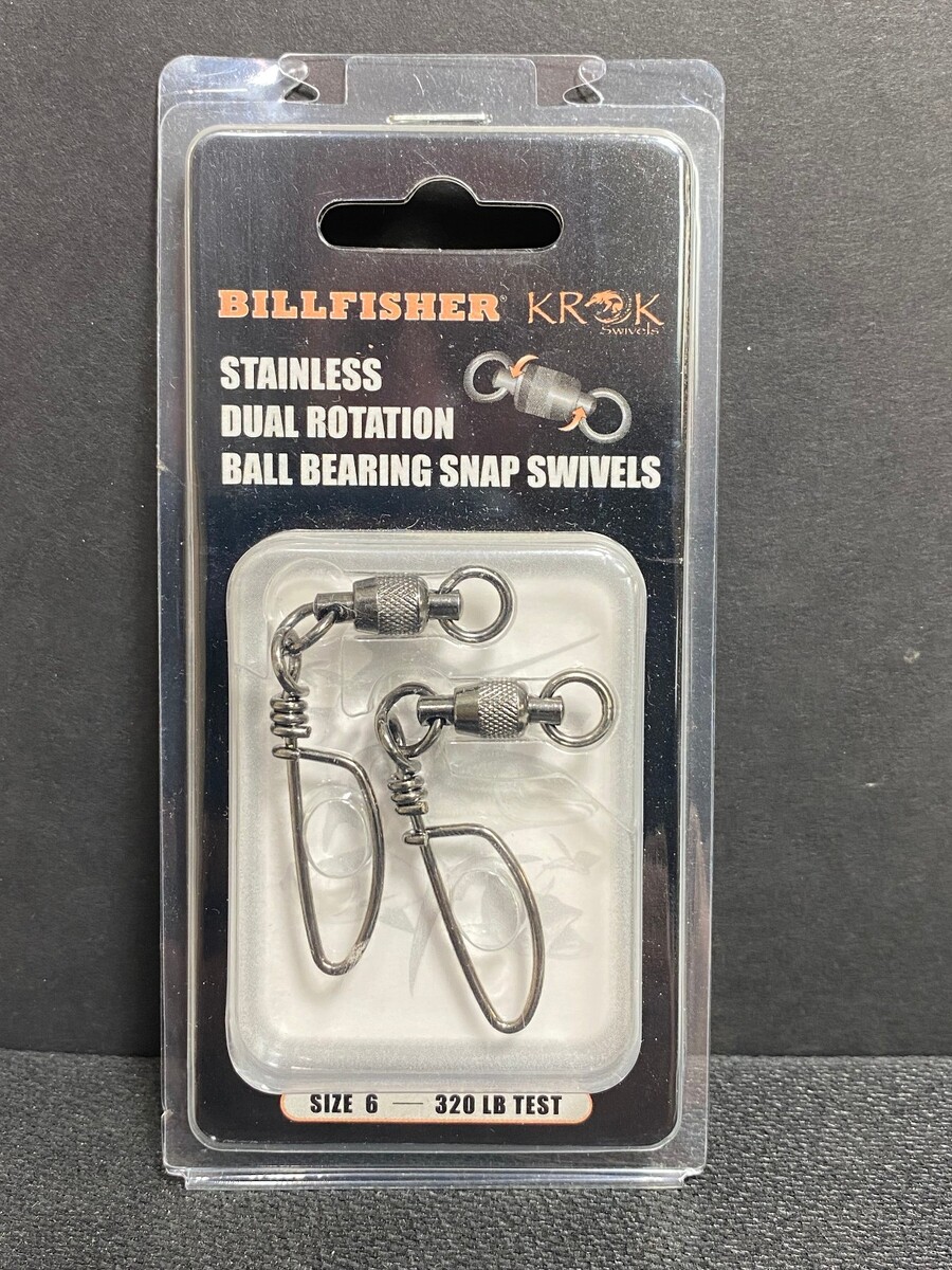 Billfisher Krok Stainless Ball Bearing Snap Swivels Size 6 320 Lb Test 2 Pack This listing is for one package of two (2) Billfisher Krok Stainless Steel Dual Rotation Ball Bearing Snap Swivels. Size 6. 320 Lb Test. Scroll down below for terms and more information Please Visit Our Store for More Fishing and Boating Items! Carefully review the description of the item prior to purchasing. TO ALL 50 STATES!! Ships USPS First Class ! Buy Before 2PM (Eastern Time Zone) and it Ships Today!! Shipping Payment Information Payment We only accept PayPal on this item. Pay for your item before 2PM (Eastern Time Zone) and it will ship same day. Shipping We can only ship to the PayPal verified address. Returns To return this item, Buyer must contact eBasicPower Returns Department within 30 days of receipt of product. Prior to return buyer must obtain an Return Authorization Number (RMA#) from eBasicPower Returns Department. After 30 days of receipt of item, Basic Power considers all sales final. ALL Shipping Costs are Non refundable. ALL returns will incur a 20% restocking fee.. Thank you for looking!!