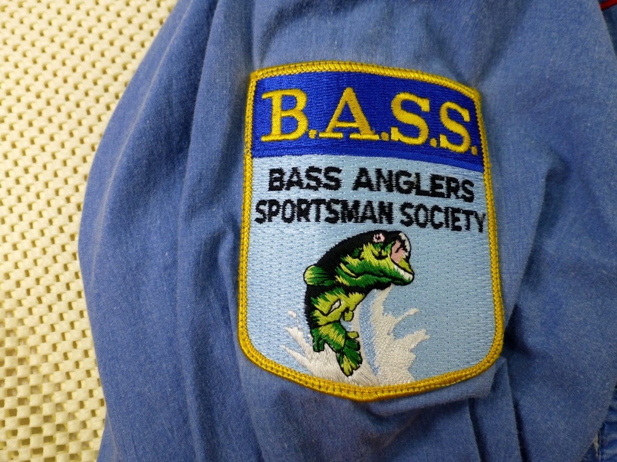 - Bimini Bay Outfitters Ltd Blue Fishing Shirt L Strike King Lures & B.A.S.S. Patc