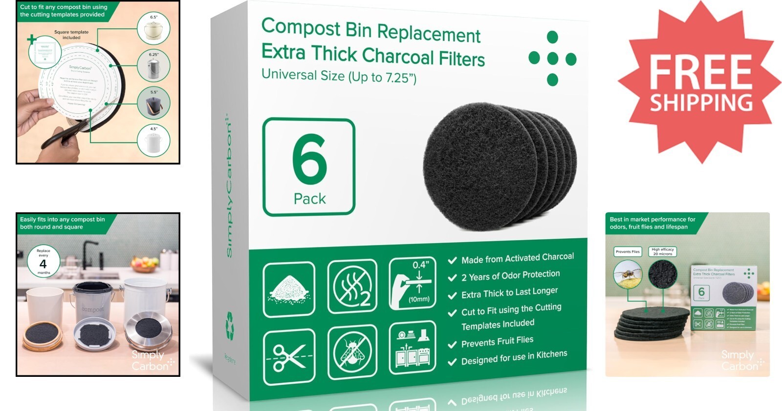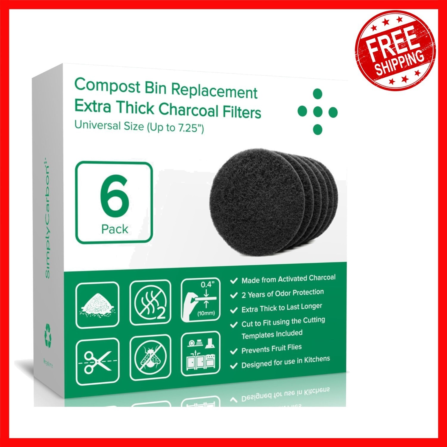 Experience the ultimate in odor control with Simply Carbon Filters, featuring a dense 0.4" activated charcoal layer and a 20-micron particle size for superior filtration. Designed to fit 99% of standard kitchen compost bins in the US, these filters are easy to install with included templates for custom sizing. Enjoy up to 2 of reliable odor protection?though replacement every 4 is recommended for optimal performance. Packaged in eco-friendly, resealable biodegradable bags, our filters combine practicality with environmental responsibility. Trust in our quality guarantee and join us in reducing your environmental footprint while keeping your kitchen fresh.