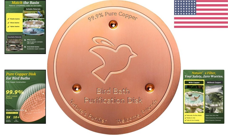 Enhance your outdoor sanctuary today with our innovative Bird Bath Copper Disk. Your birds will thank you, and your garden will thrive.