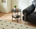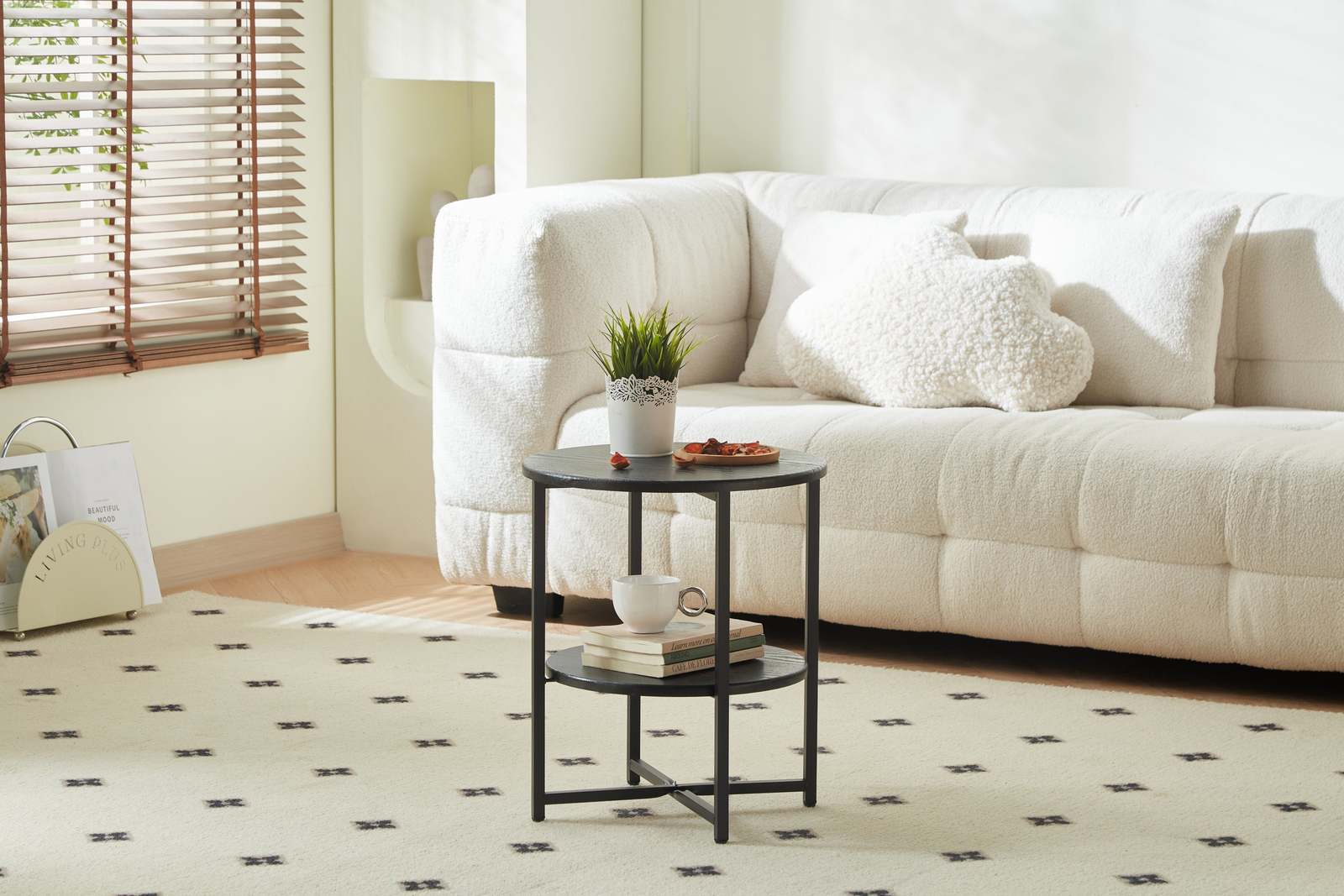 MULTI-USE:The small round table can be used as a sofa side table,bedside table,coffee table,accent table,nightstand,farmhouse end table,or plant stand.2tiers design can help store more essentials in your living room bedroom or office;Place coffee and vase on the tabletop and books on the shelf.