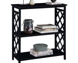 - Black 3-Tier Console Table with Storage & Open Bookshelf Solid Wood Legs