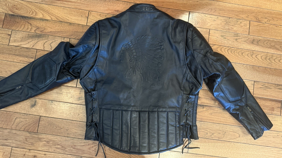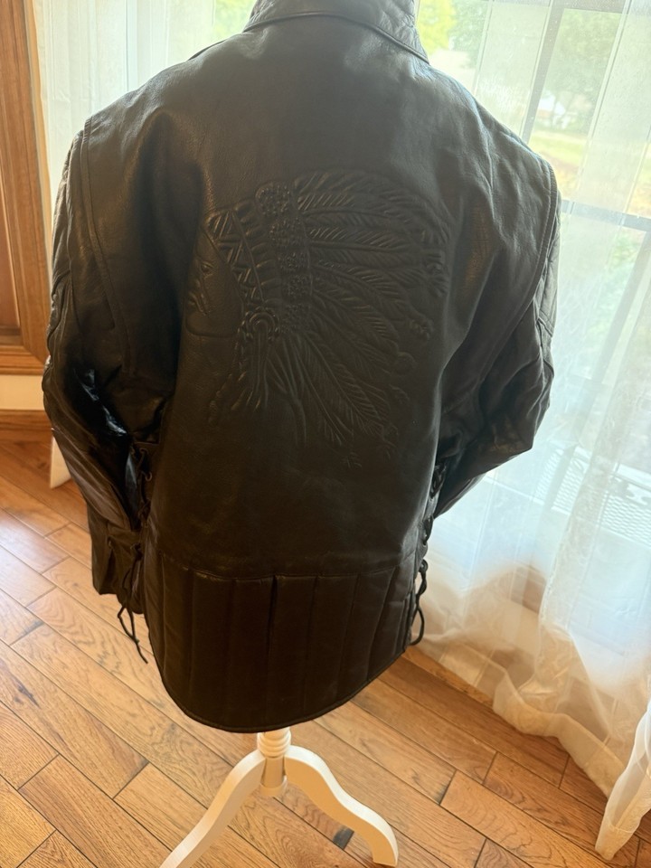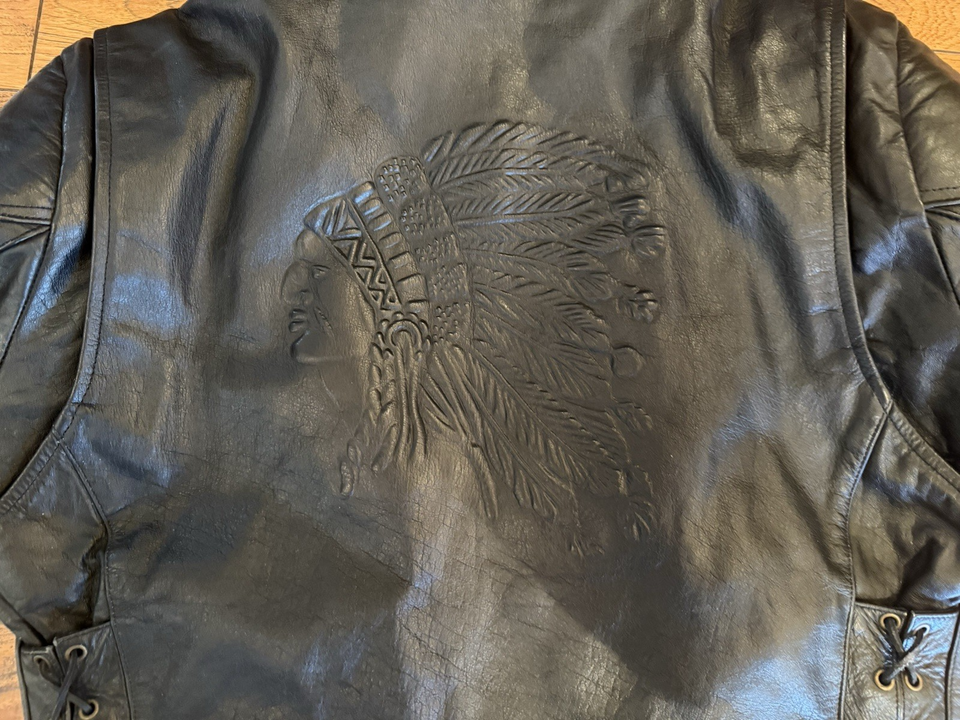 - Black Biker Embossed Indian Head Leather King's Jacket Sz. 48