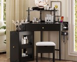 - Black Corner Makeup Vanity Desk w/ Stool, Storage & Charging Station