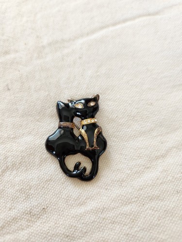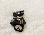 - Black Enamel Kitty Cats Pin Brooch With Rhinestone Eyes & Collar