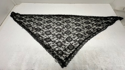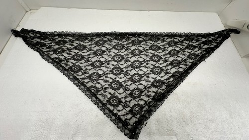 Black Floral Lace W/ rhinestones Church Head Cover Scarf Triangular 38” W