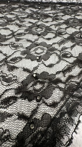 This vintage black floral lace scarf with rhinestones is the perfect accessory to complete your Sunday best outfit. The scarf is made of high-quality lace material and features a beautiful floral design that will add a touch of elegance to your look. The scarf is also triangular in shape, making it easy to wear and style.