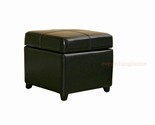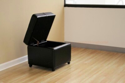 - Black Full Leather Square Flip Top Storage Cube Ottoman Foot Stool Seat