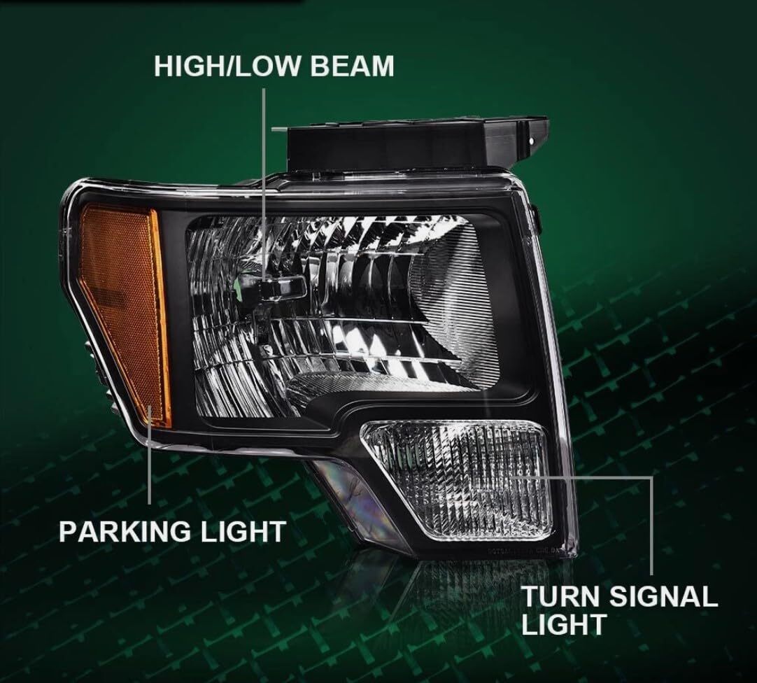 Manufacturer Part Number?J-02HLA1239ZBK Type?Headlights+Tail Lights Placement on Vehicle?Front, Left, Right, Rear Housing Color?Black Lens Color?Clear Fitment Type?Direct Replacement Interchange Part Number?DL3Z13008A, DL3Z13008B, DL3Z13008EB, DL3Z13008EC, FO2818148, FO2819148, FO2818150, FO2819150 Material?ABS Plastic / Polycarbonate Lens Package Includes: 1 Pair of Headlights+Tail Lights (Left Right)