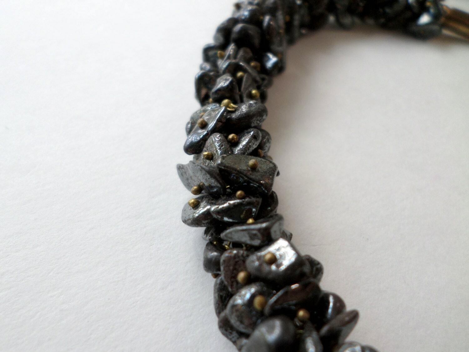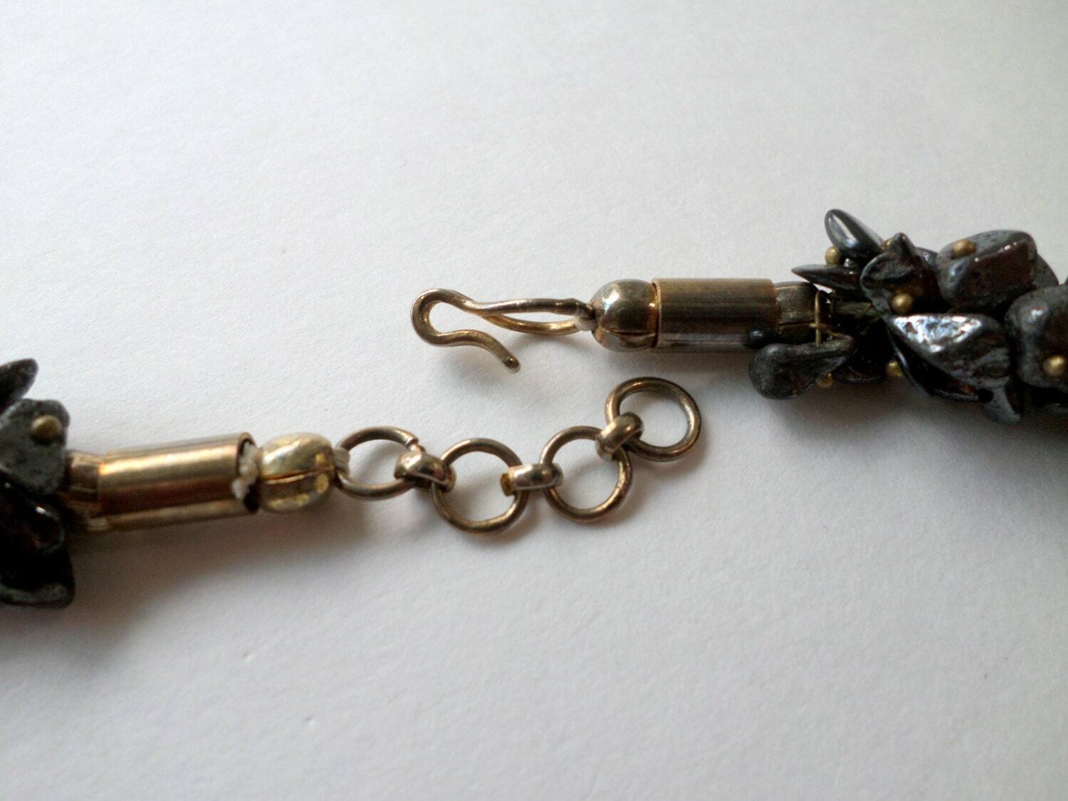 ?Style/Features: Full choker with a chunky look of natural gemstone chips that sparkle and catch light. Each gemstone is individually pinned to the center support with brass pins