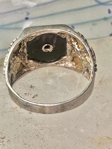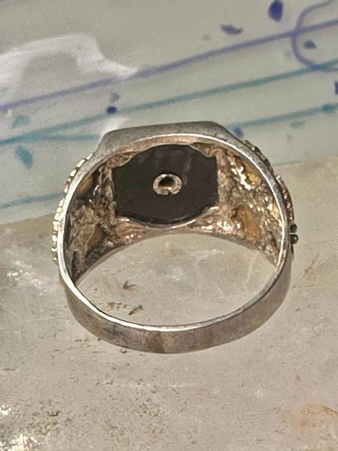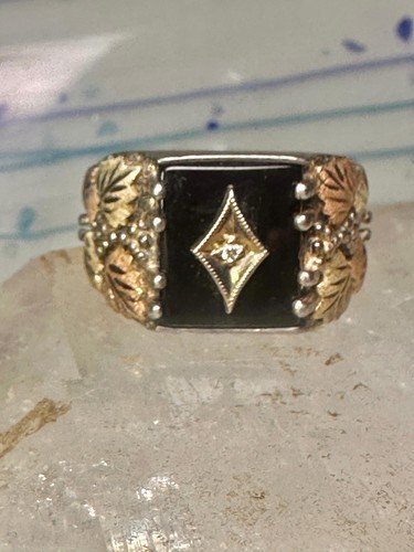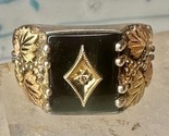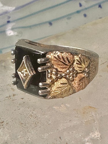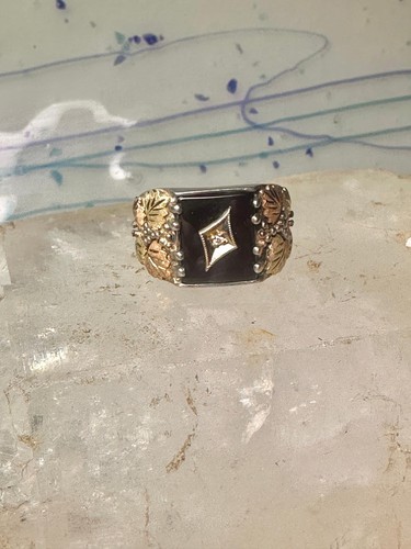 - Black Hills Gold ring Onyx band Floral leaves size 12.7 sterling silver women me