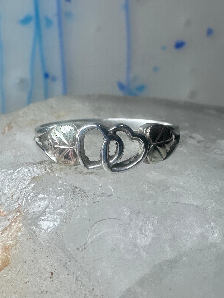 - Black Hills Gold ring double heart Valentine Love band size 9.25 sterling silver