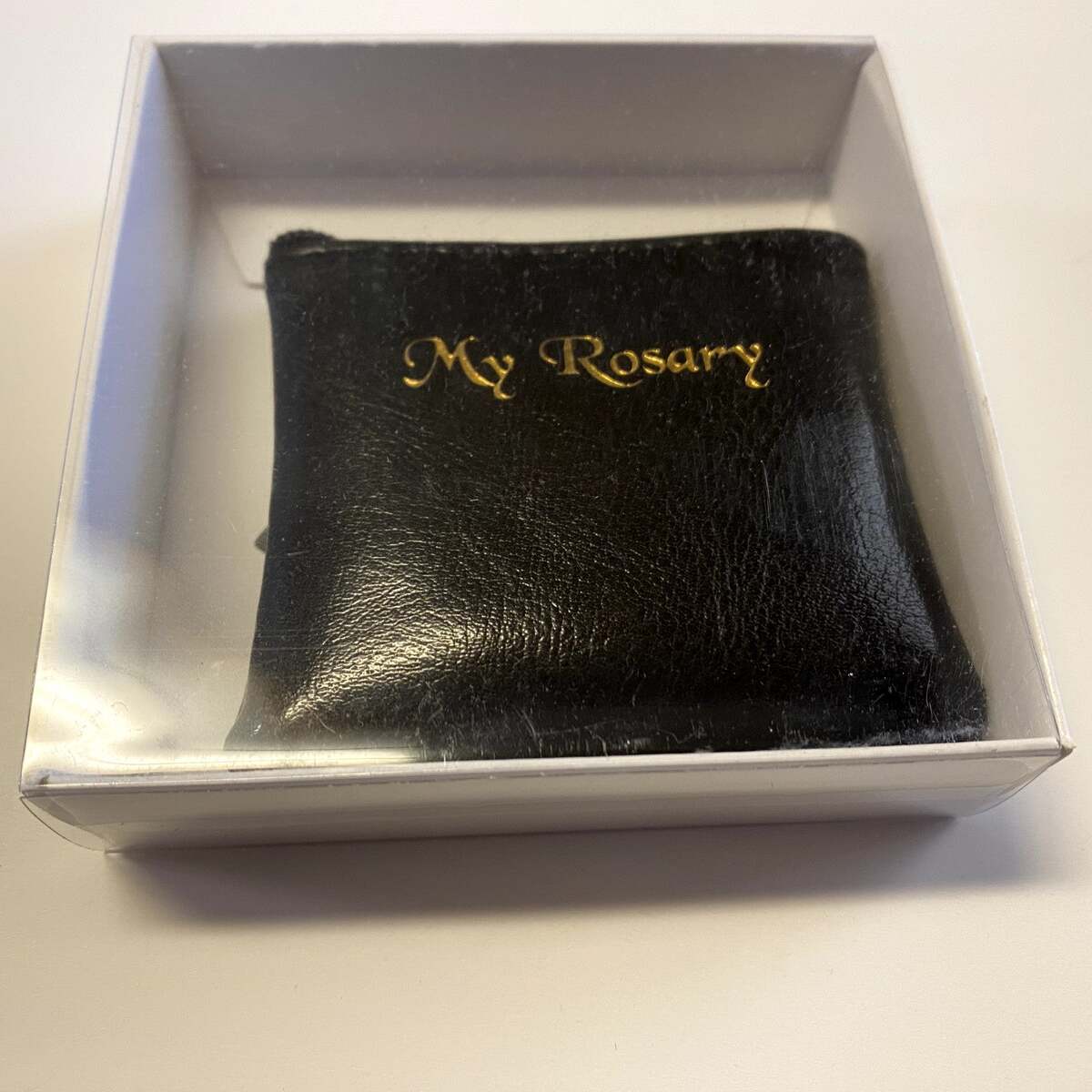 Your purchase is for a very nice black genuine leather zippered rosary pouch. It's perfect for yourself or as a gift, it comes with a box ready for gift wrapping. Best way to have your rosary handy to pray at any time without having to look for it.