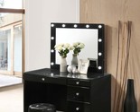 - Black Makeup Vanity Set: Lighted Mirror, Glass Top, 5 Drawers & Stool