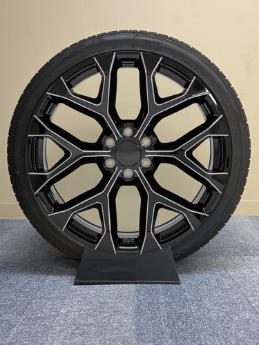 Black Milled 24" Snowflake Wheels H/T Tires Silverado Tahoe Sierra Yukon