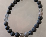 Black Moonstone and Lava rock 6mm. bead stretch bracelet size 6.5in.