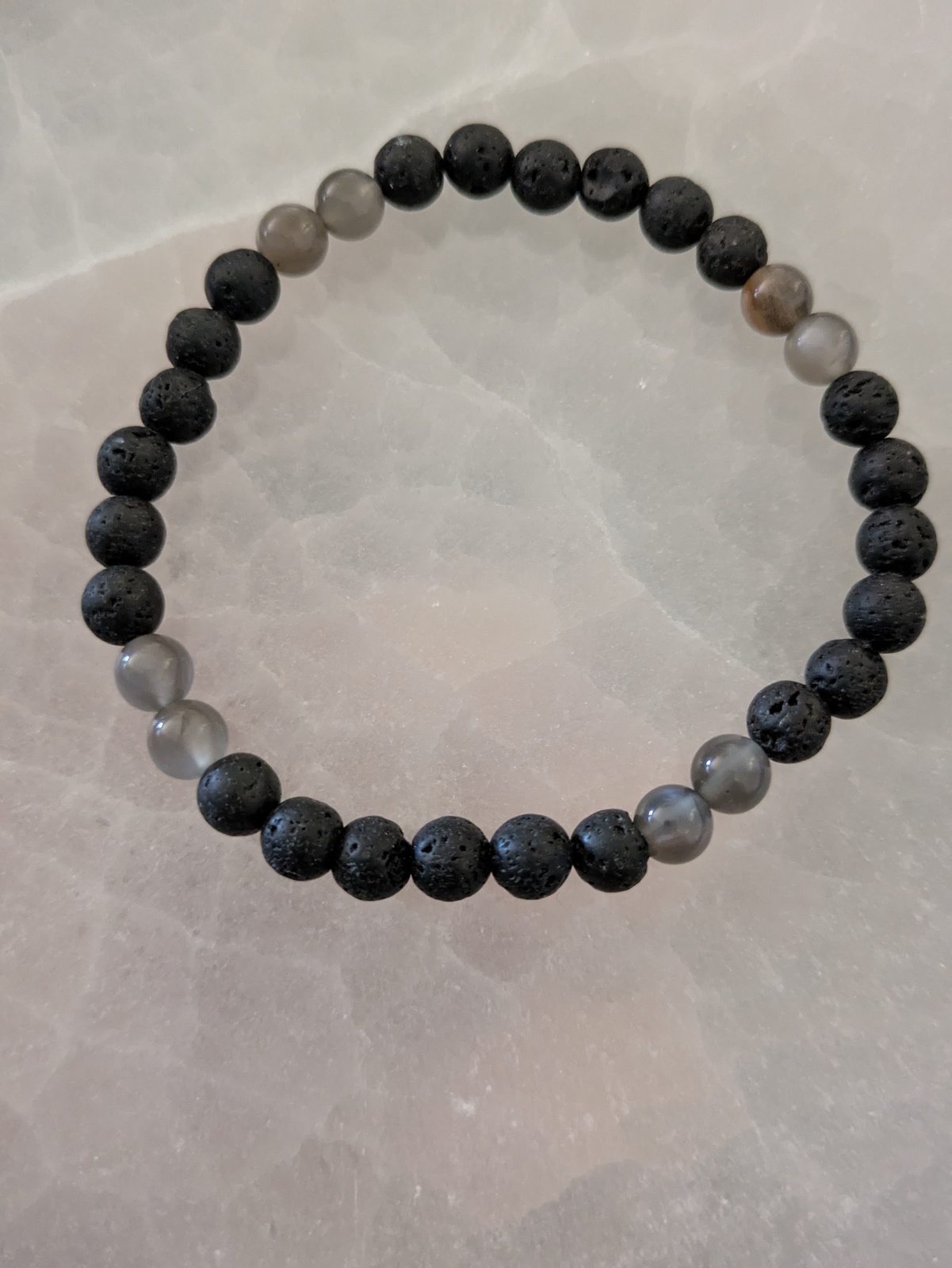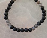 Black Moonstone and Lava rock 6mm. bead stretch bracelet size 7.5in.