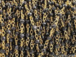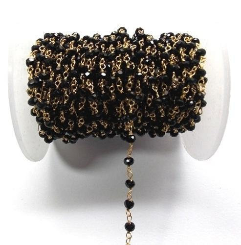 - Black Onyx Rosary Chain-Faceted Onyx Beads Chain-Wire Wrapped Rosary Chain-925 S