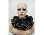 Clown Costume Collar. Has Velcro tabs on the ends. Well Made. The collar can be wrapped tighter for a fuller look but it will require pinning to hold it in place. (safety pins not included) Please see all photos for details. I have shown both ways. 2 Layers of ruffles. Gently Pull layers apart to separate the fabric to give a fuller appearance. No elastic. Does not stretch. Fabric is bunched along a cord / string. It may be necessary to pull fabric around the cording to distribute the bunching evenly. 100% Polyester. The fabric is kinda smashed in some places and may have some wrinkles or creases from being in package. It may need some shaping / adjusting before wear. Unisex: Male or Female. No age specs. Most costume items are for ages 14 and up. Does have some longer threads that will need trimming. Be cautious to keep Velcro from the edge threading to prevent pulling the thread. Collar photographed Measures Approx: 26". Please note length may vary slightly per collar.