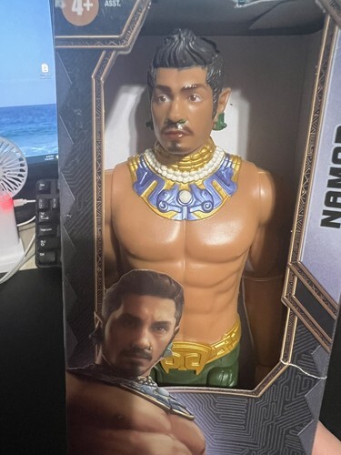 This Black Panther Wakanda Forever Namor Marvel Titan Hero Series 12" Action Figure is a must-have for any fan of the franchise. The multicolor figure depicts the character Namor, and comes with a doll for added playability. The item is an original, licensed reproduction from the Marvel brand and was manufactured in 2022 in China. The action figure stands at 12 inches tall and is part of the Black Panther theme. It is a great addition to any collection and perfect for display or play. Get this amazing piece of memorabilia today! The box has some damage. See pictures for details