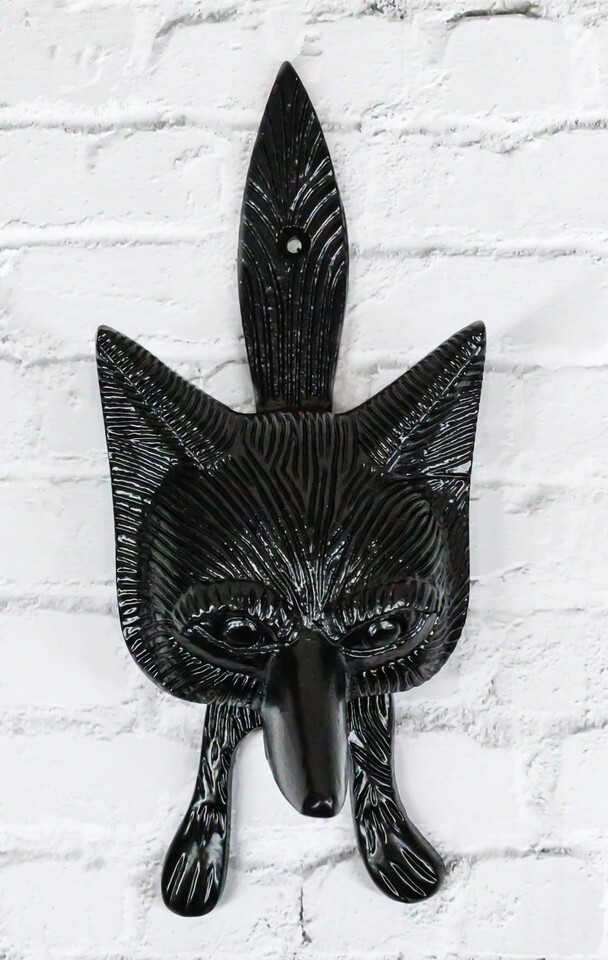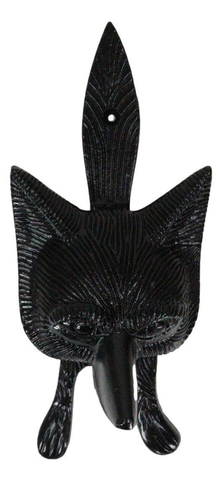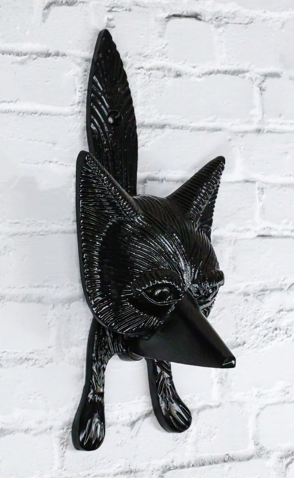 - Black Powder Cast Iron Rustic Whimsical Animal Chibi Fox Door Knocker Plaque