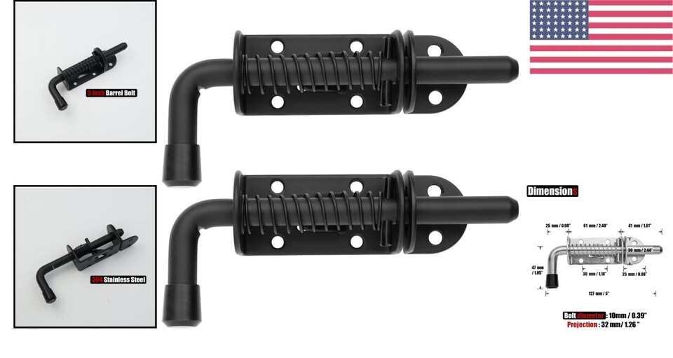 - Black Spring Pin Latch with 10mm Solid Bolt - Versatile Door Lock 5 Inch 2 Pack