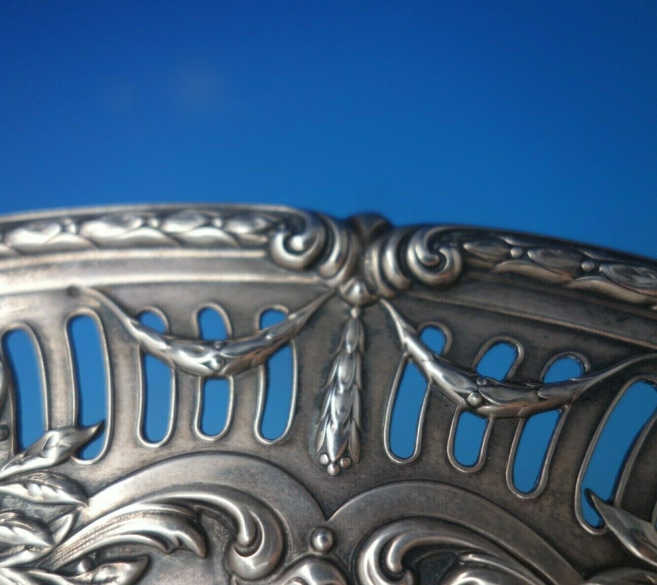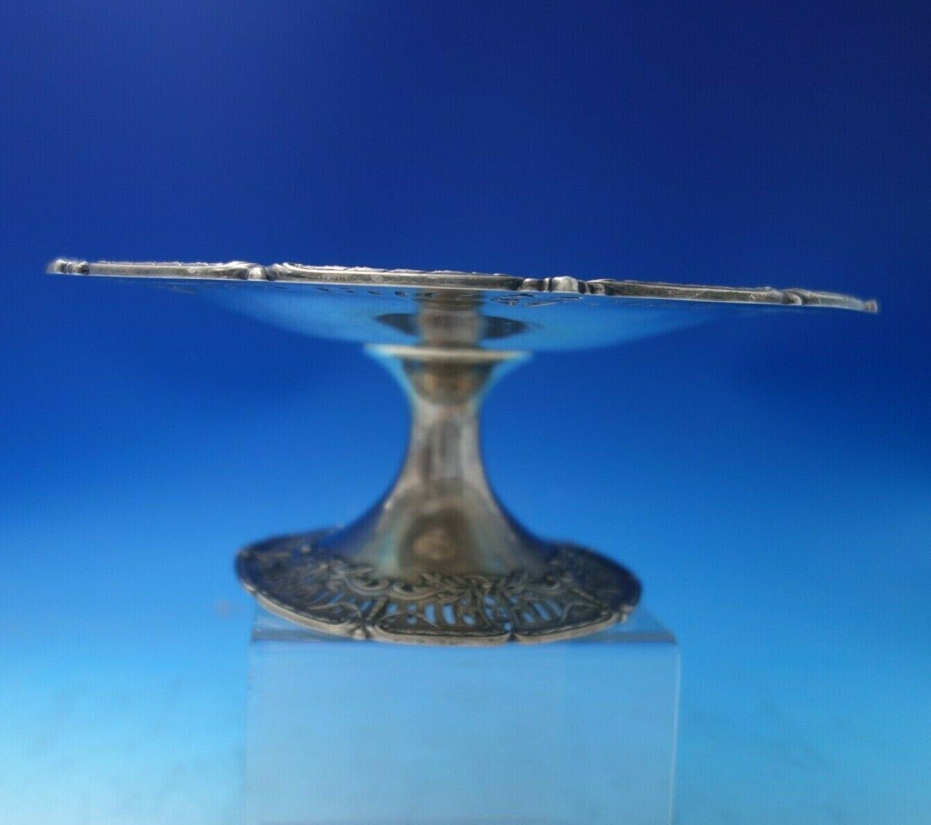 Superb Black Starr and Frost sterling silver raised compote marked #163/6412, circa 1900. This piece measures 4" tall x 10" (actual size) in diameter and weighs 21.5 troy ounces. It is monogrammed in the center (see photos), and is in good vintage condition. Outstanding!