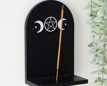 Add a touch of mystical ambiance to the home with this black wooden incense shelf featuring a triple moon design, perfect for dispersing fragrance more freely. When not in use, the shelf can be used to display treasured crystals or trinkets. A pre-installed bracket on the reverse makes hanging this shelf quick and easy.