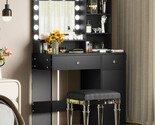 - Black Vanity Desk w/ Mirror, 3 Lighting Modes & Storage Shelves