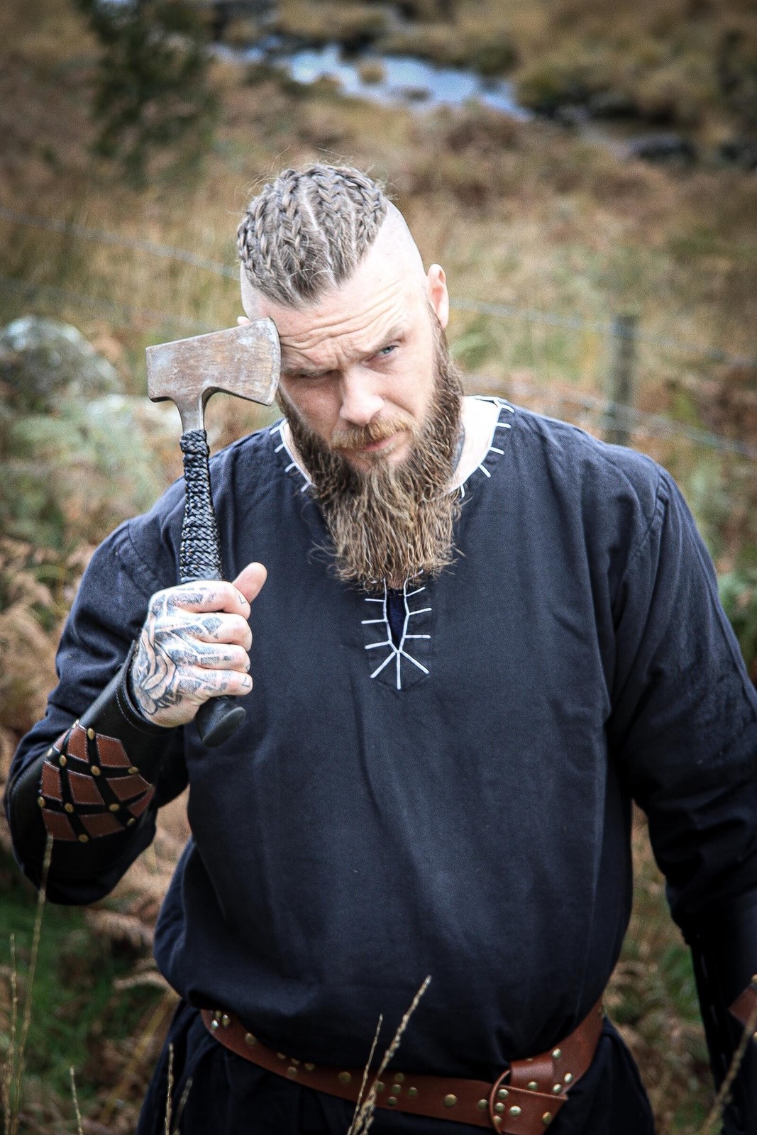 - Black Viking Tunic with Embroidery – Cotton Norse Garb for LARP & Reenactment