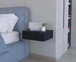 - Black Wall-Mounted Floating Nightstand - Modern Bedroom Storage Shelf