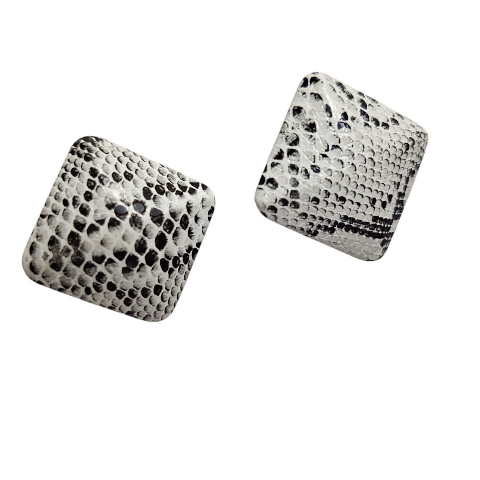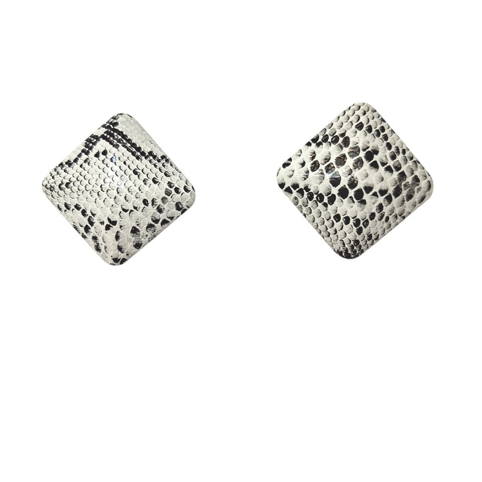Black White Python Snake Print Square Post Earrings 80s 90 Boho Costume Jewelry