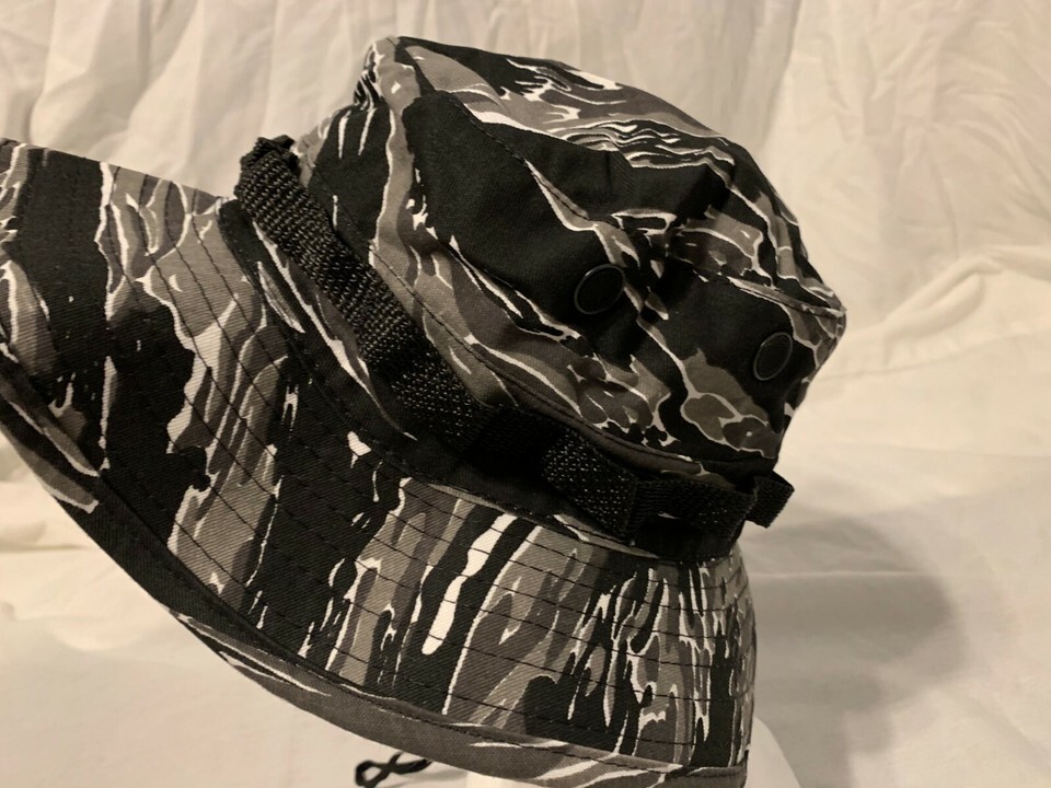 Primary image for BLACK & WHITE SNOW JUNGLE TIGER STRIPE HUNTING FISHING BOONIE SUN HAT TYPE II