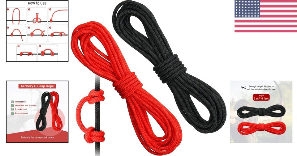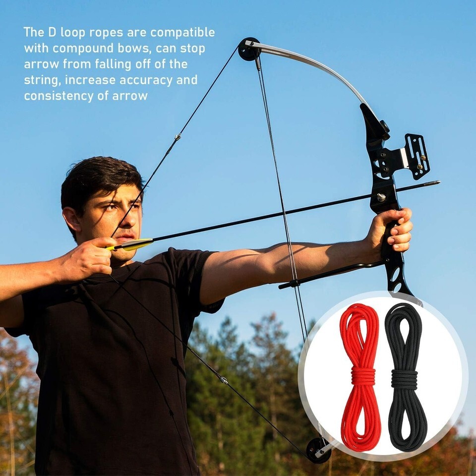 Includes two pieces of archery D loop ropes in striking black and red colors.