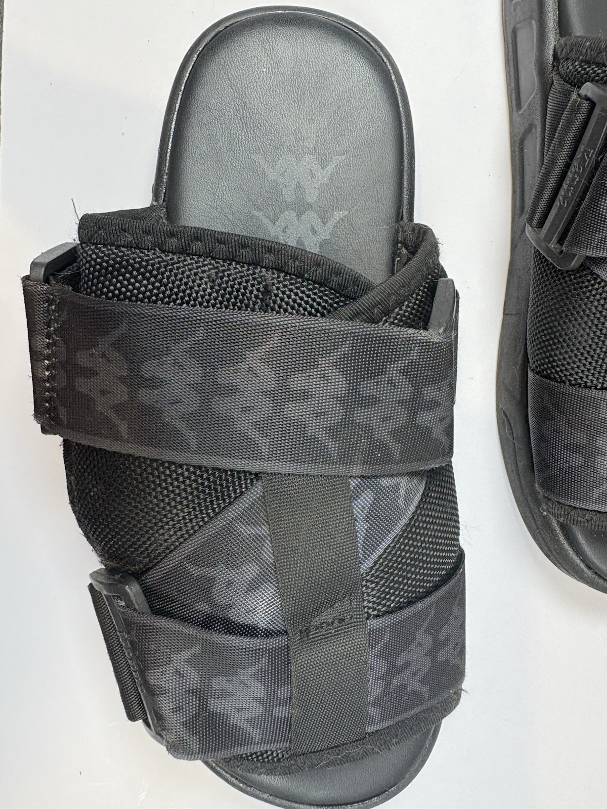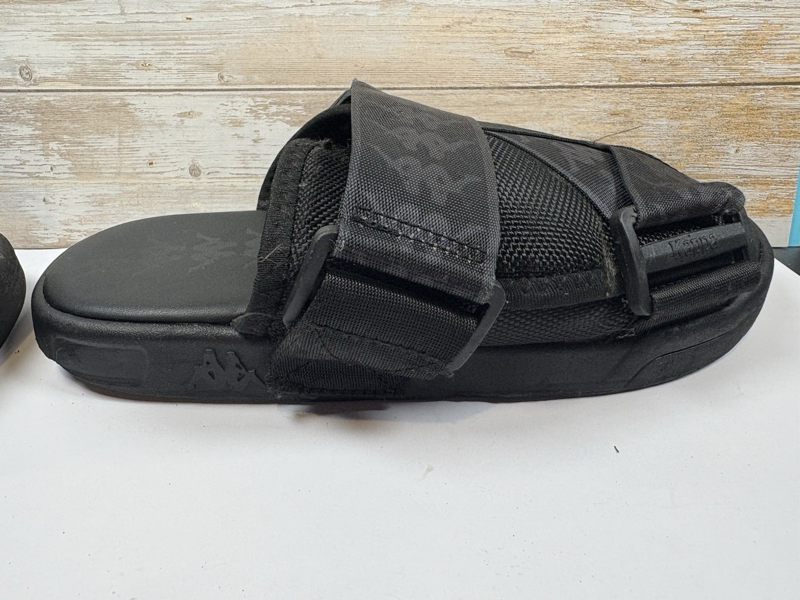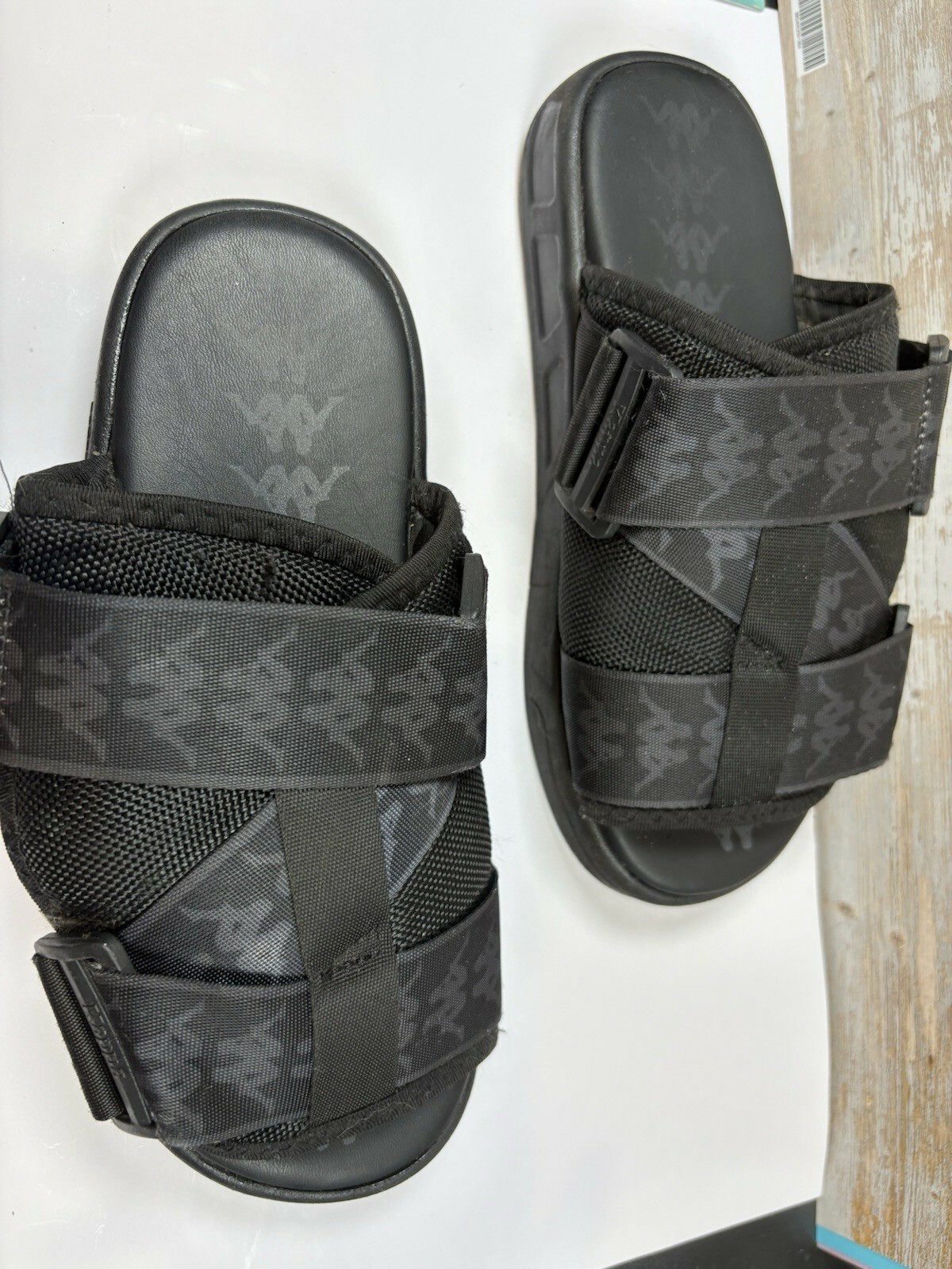 The Black/grey Kappa Slides in Size 5 are a stylish and comfortable option for casual wear during the summer and spring seasons. These slip-on sandals feature a solid black color with the brand's logo accents, making them a versatile choice for men looking for a trendy yet practical footwear option. With a synthetic upper material and lining, rubber outsole, and standard shoe width, these slides offer both style and comfort for everyday wear. The Kappa brand ensures quality and durability, making these slides a reliable choice for any casual outfit.
