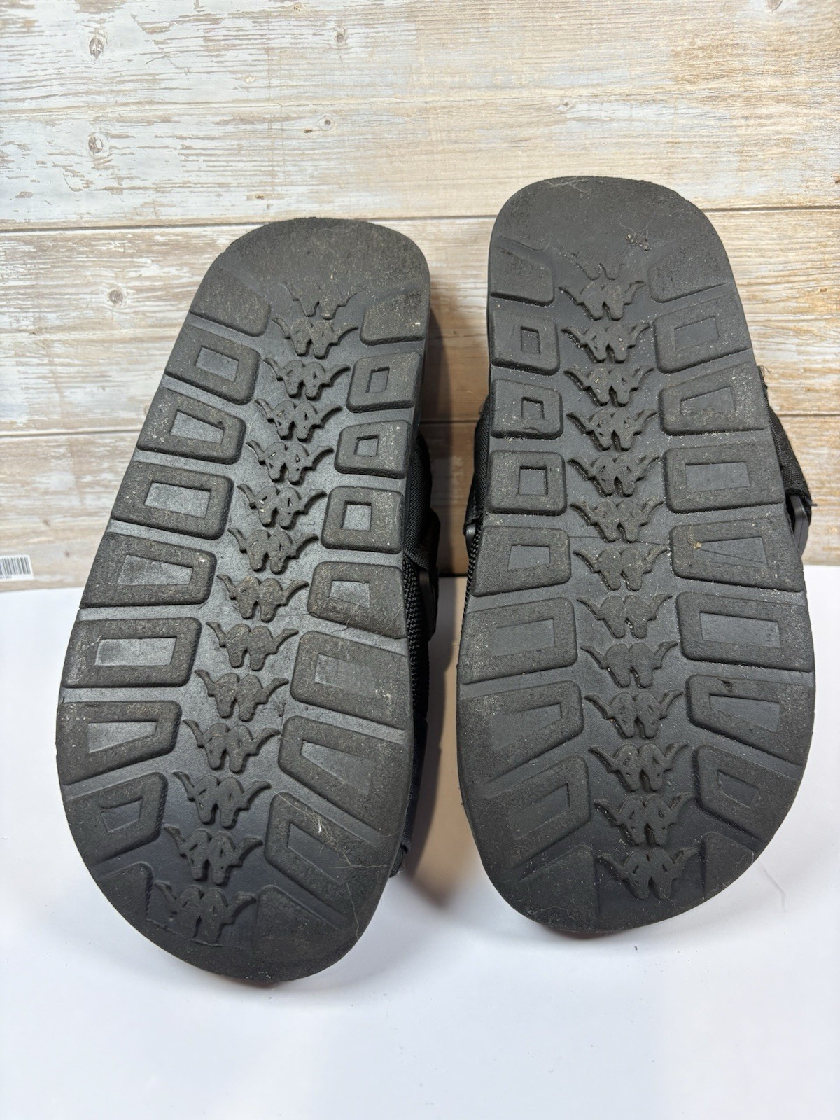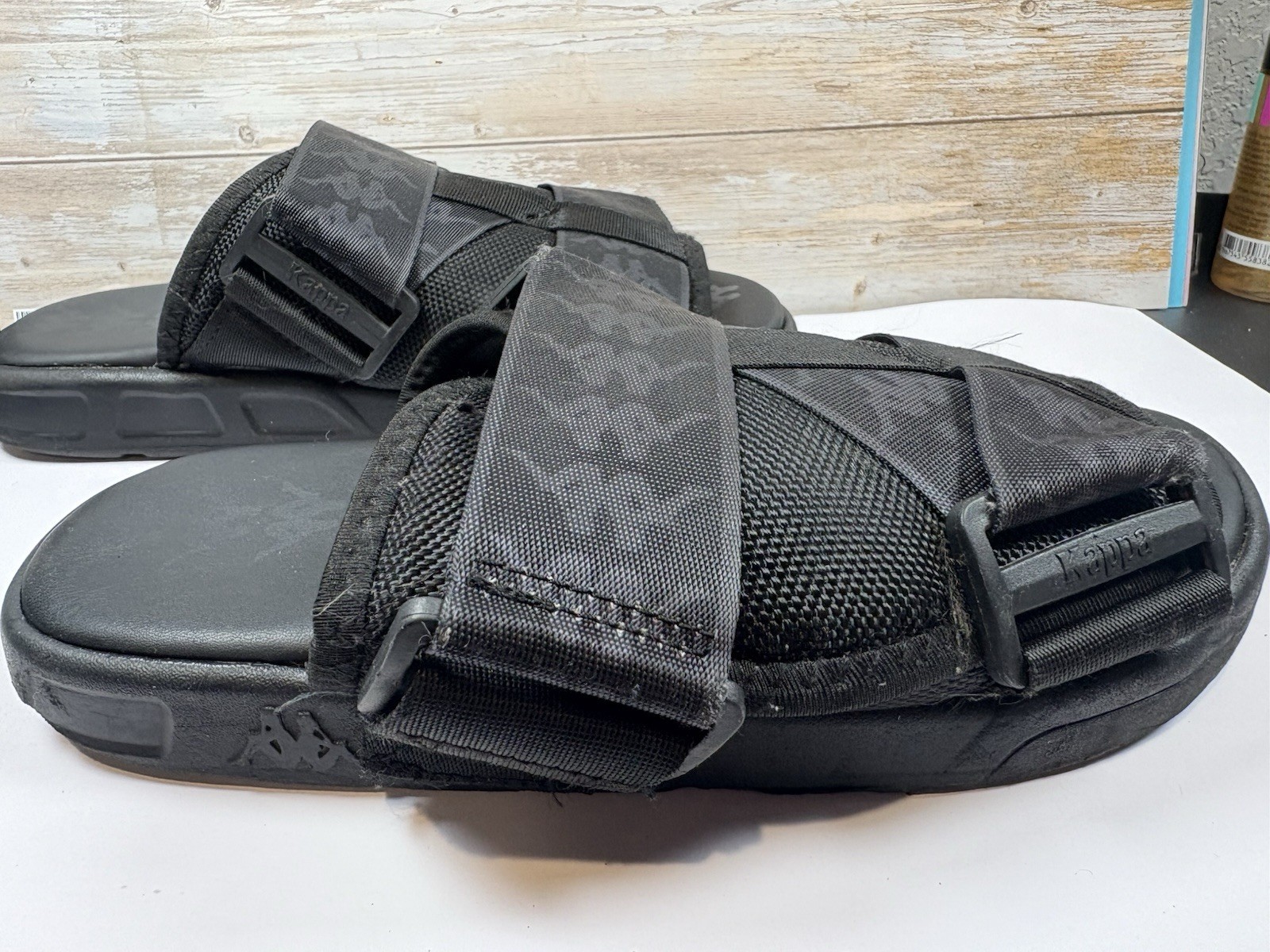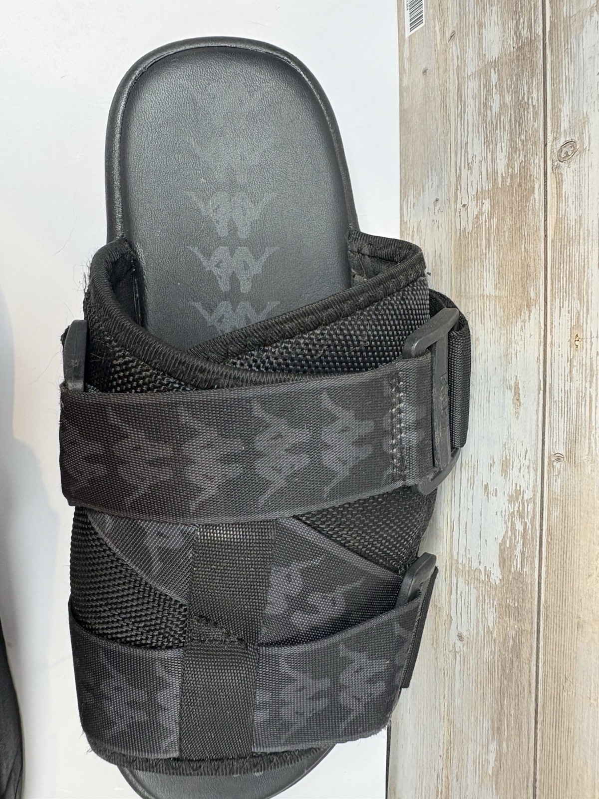 The Black/grey Kappa Slides in Size 5 are a stylish and comfortable option for casual wear during the summer and spring seasons. These slip-on sandals feature a solid black color with the brand's logo accents, making them a versatile choice for men looking for a trendy yet practical footwear option. With a synthetic upper material and lining, rubber outsole, and standard shoe width, these slides offer both style and comfort for everyday wear. The Kappa brand ensures quality and durability, making these slides a reliable choice for any casual outfit.