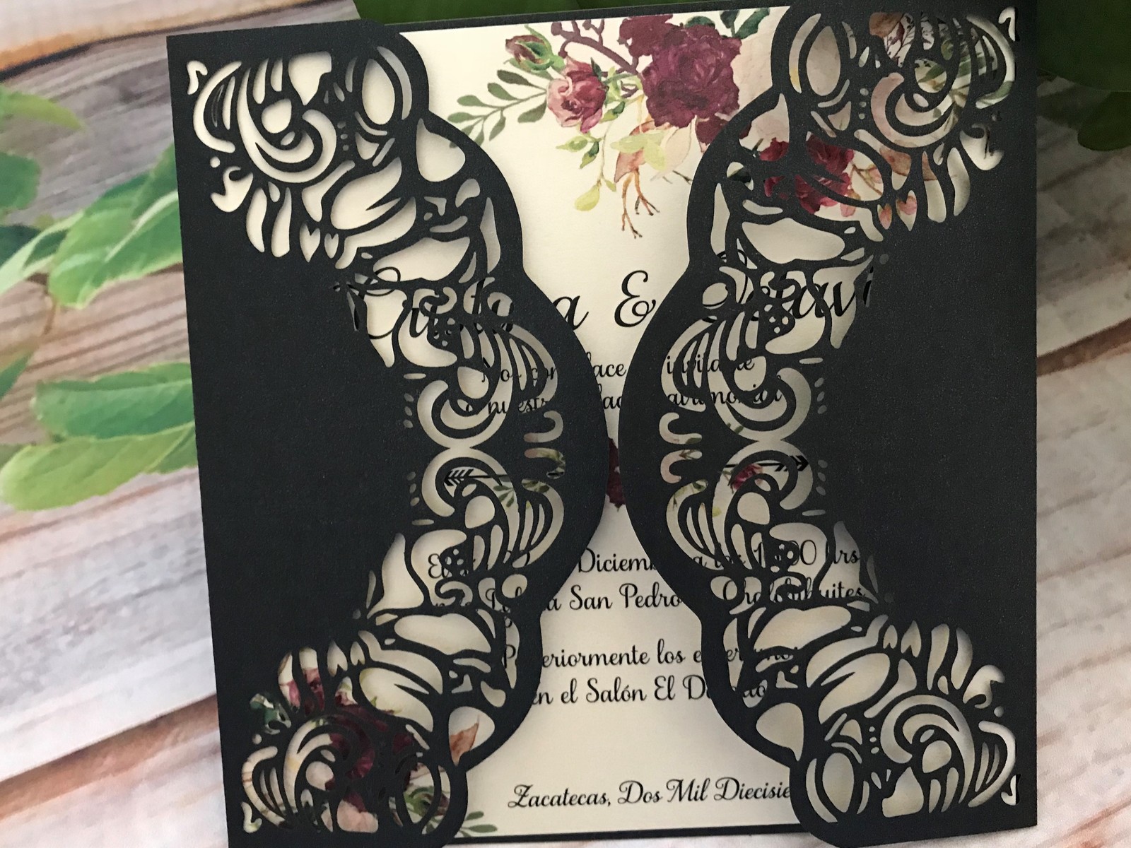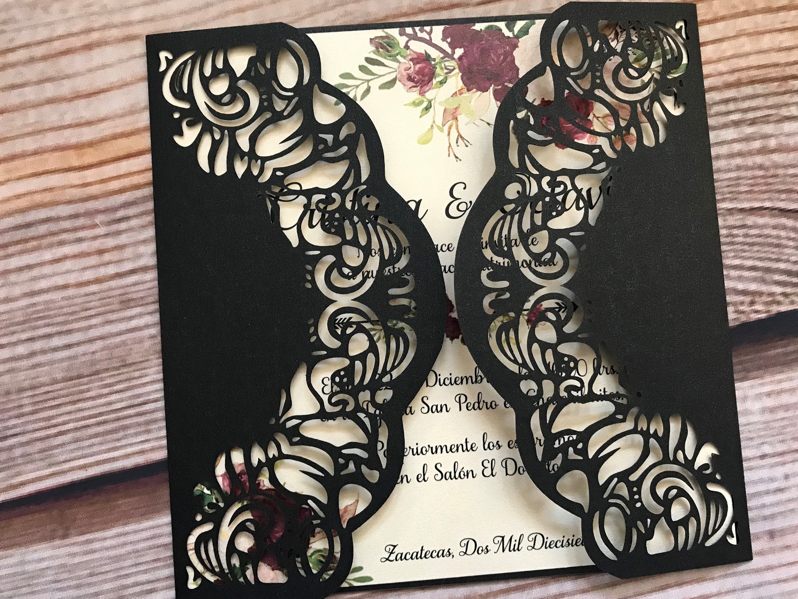 - Black handmade invitation cards,laser cut Wedding Invitation,pack of 50pcs