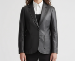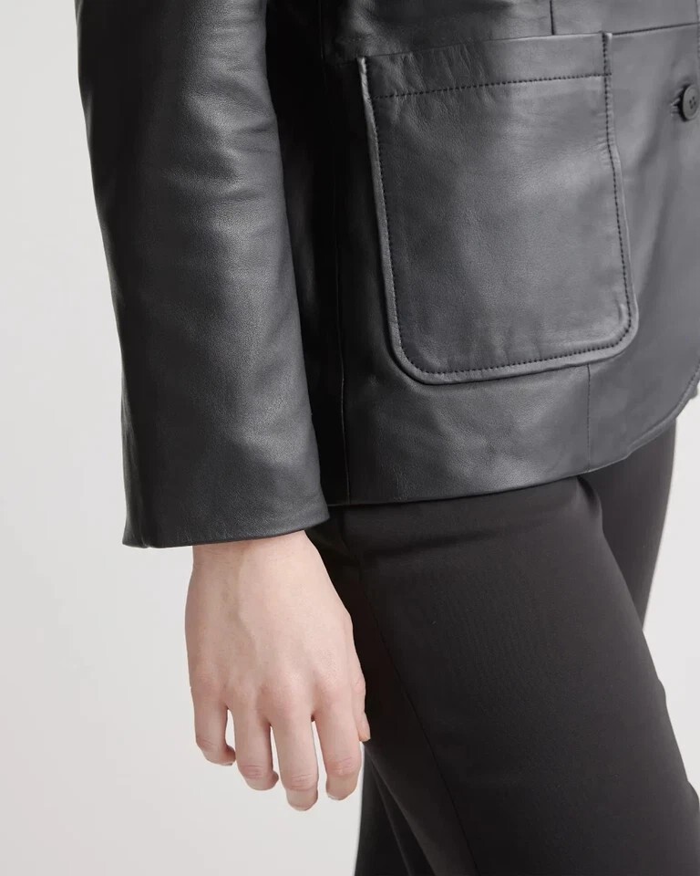 Blazer donna due bottoni vera pelle di agnello fatto a mano nero pelle uffici...