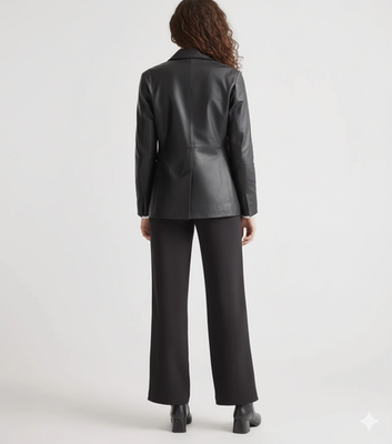 Blazer donna due bottoni vera pelle di agnello fatto a mano nero pelle ufficio formale/MN