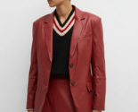 Blazer rosso fatto a mano da ufficio donna pelle formale due bottoni vera pel...