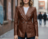 Primary image for Blazer ufficio abbigliamento formale donna fatto a mano pelle marrone vera...