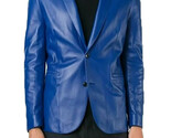 Blazer uomo formale elegante moda nuovo blu fatto a mano vera pelle di agnell...